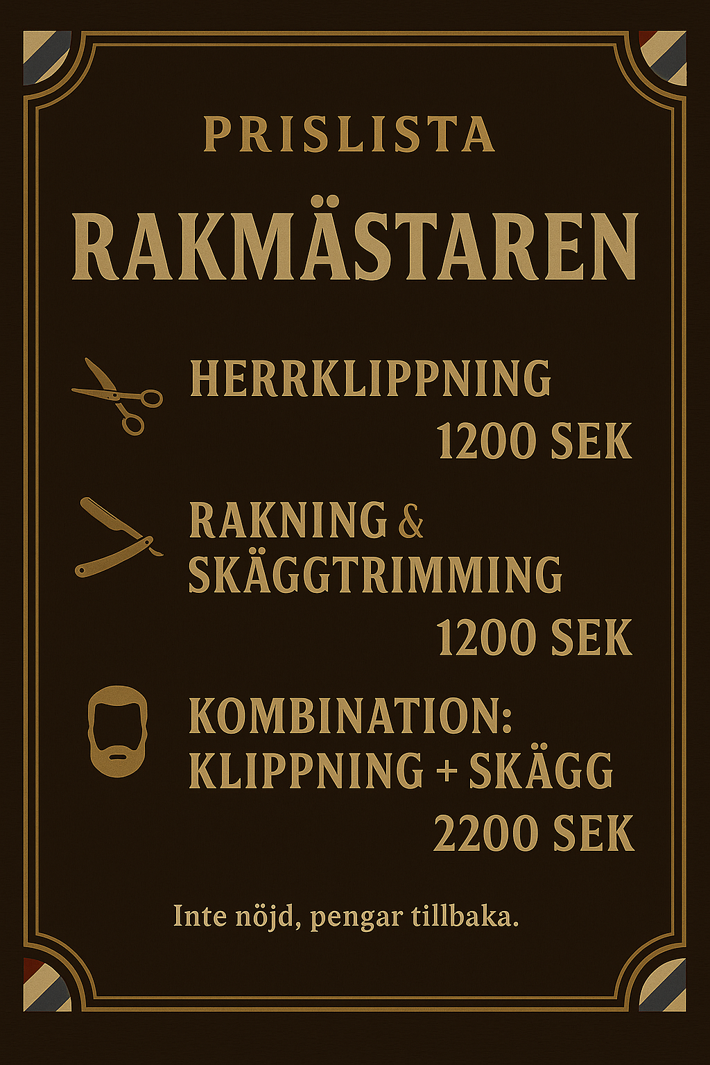 Wij zijn een Edele Barbier met Edele Prijzen. Geenszins een goudkope beunhaas die voor één enkele dukaat uw schedel kaalrukt binnen éénen enkele sekonde. Neen! Edel Vakmanschap kent zijnen prijs.
