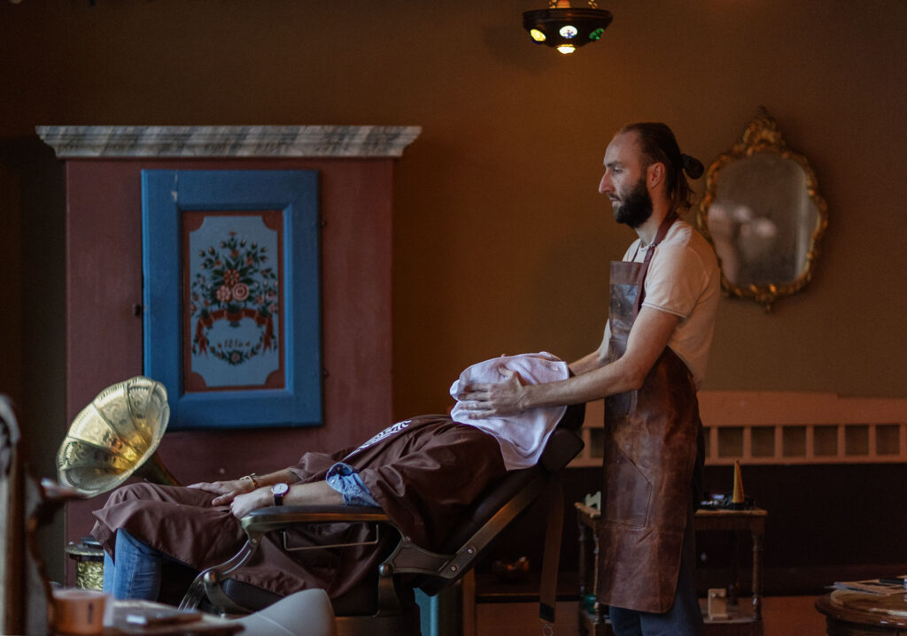 Verdiep u in de essentie van het klassieke barbiersambacht met ons traditionele scheerritueel. Bij Hos Den Gamle Rakmästaren is iedere beweging van het scheermes een daad van precisie en toewijding. Uw huid wordt zorgvuldig voorbereid met warme handdoeken en de fijnste baardoliën, waardoor de poriën zich openen en een gladde, zachte en huidvriendelijke scheerbeurt wordt gewaarborgd.